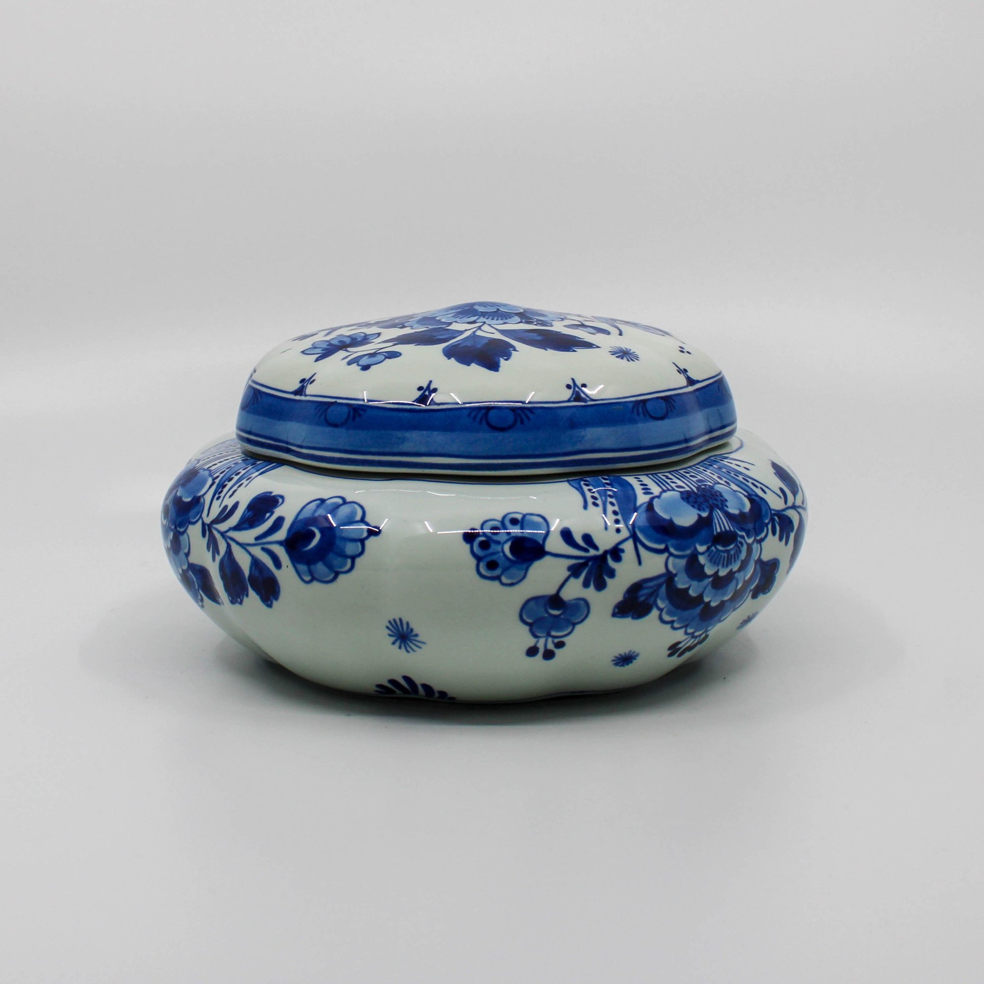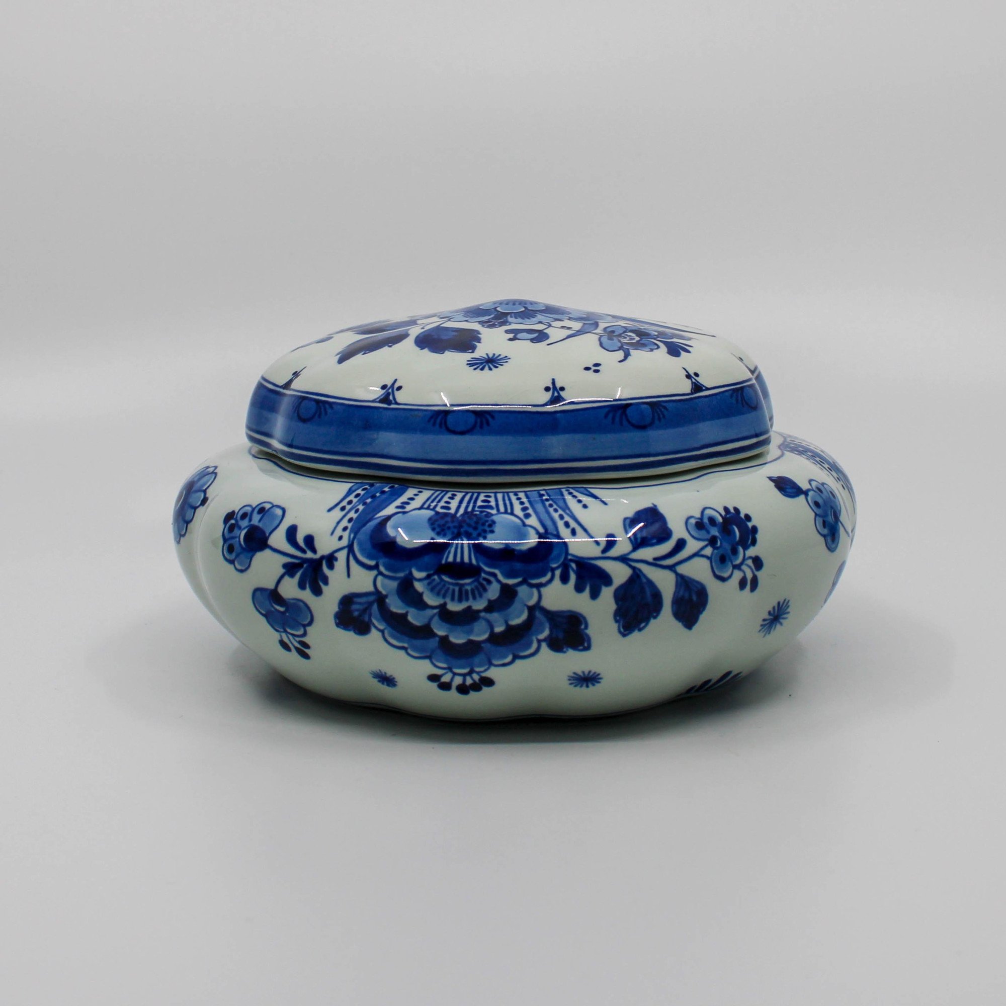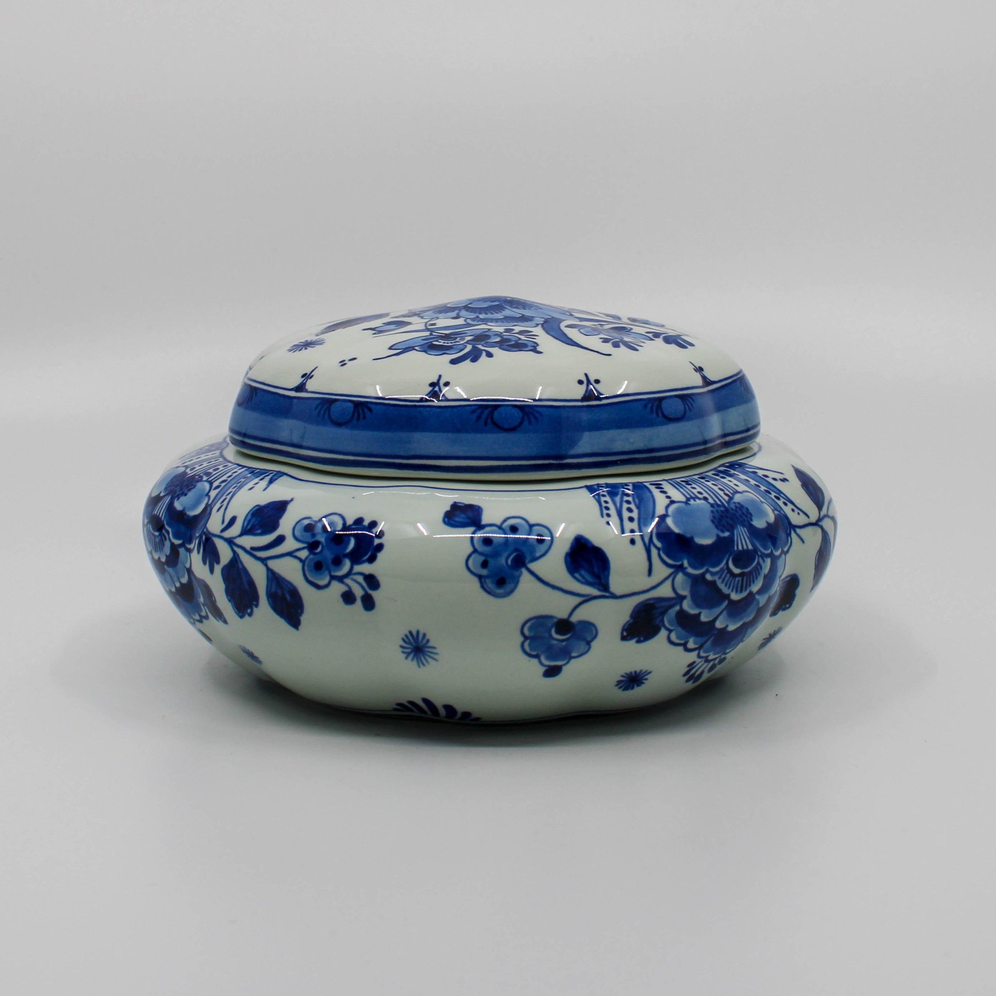 Deze Delfts Blauwe bonbonnière past zowel in een klassiek als in een modern interieur. Je kan deze bijvoorbeeld plaatsen op een (bijzet-)tafel, op een commode of in een boekenkast. Je kan deze ook gebruiken als voorraaddoos om bijvoorbeeld chocolade of ander snoepgoed in te bewaren of je kan er ook juwelen in opbergen.