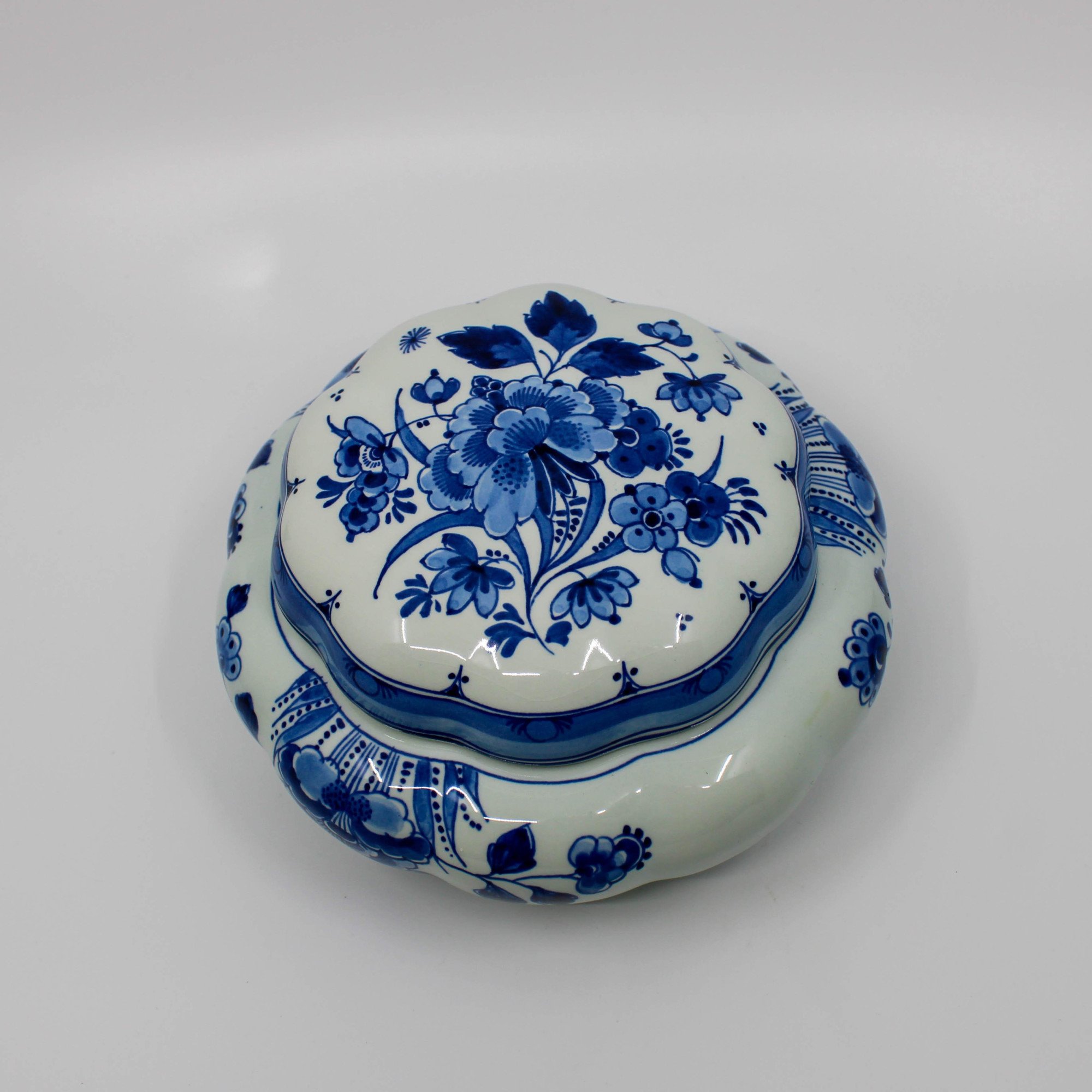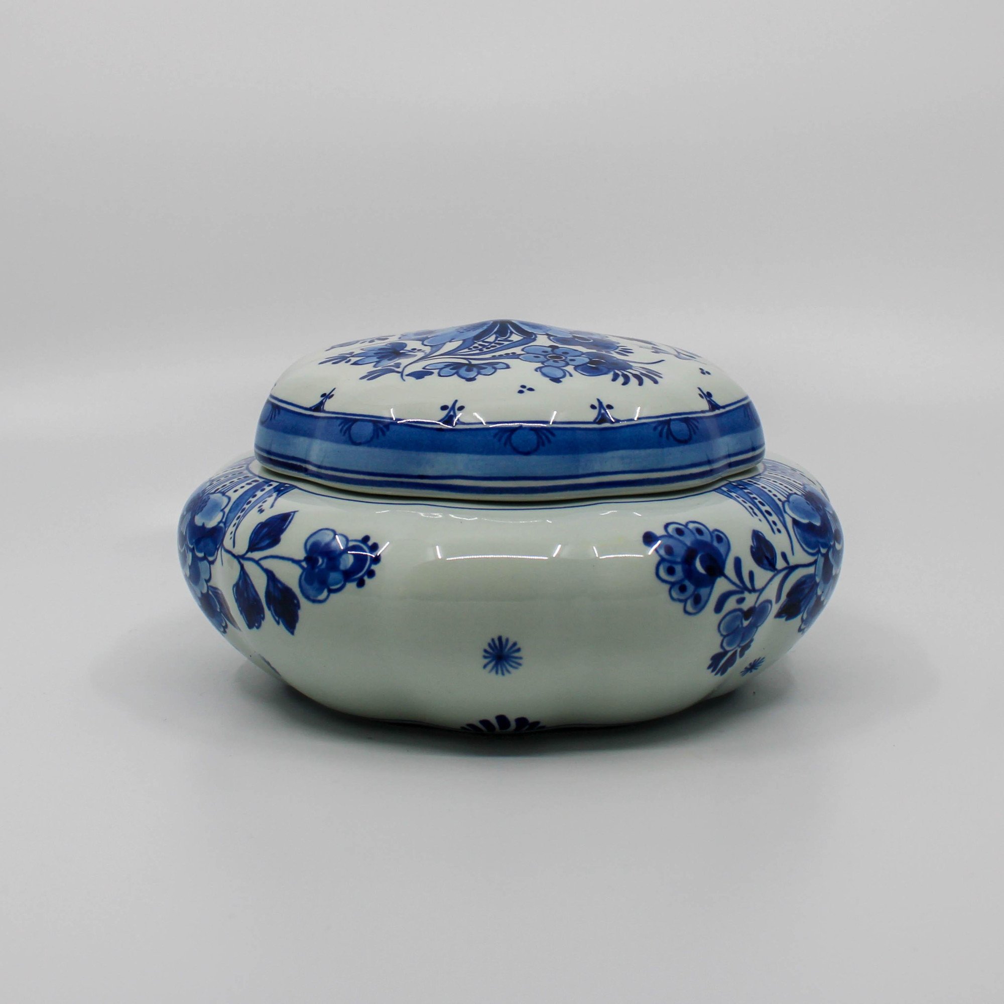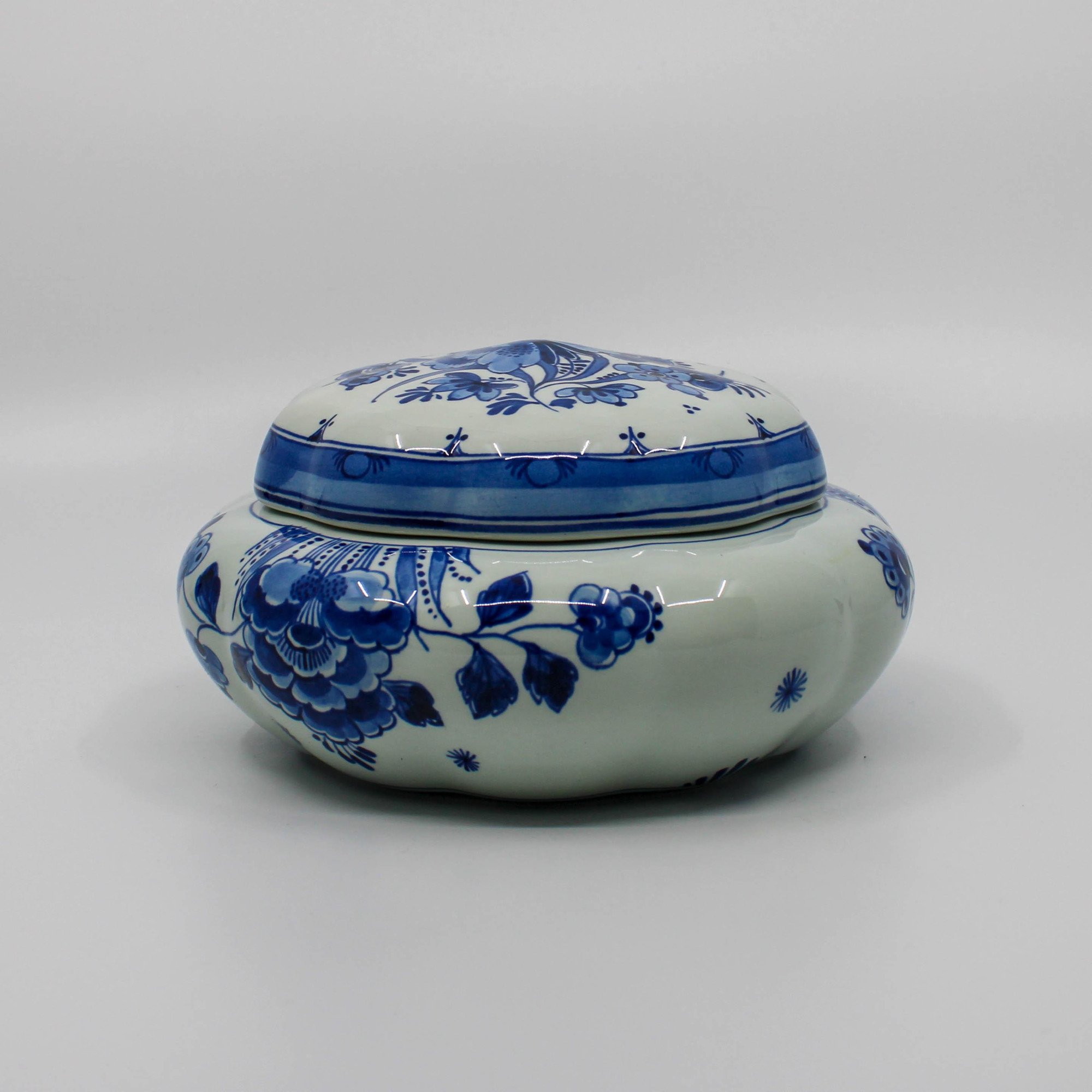 Deze Delfts Blauwe bonbonnière past zowel in een klassiek als in een modern interieur. Je kan deze bijvoorbeeld plaatsen op een (bijzet-)tafel, op een commode of in een boekenkast. Je kan deze ook gebruiken als voorraaddoos om bijvoorbeeld chocolade of ander snoepgoed in te bewaren of je kan er ook juwelen in opbergen.