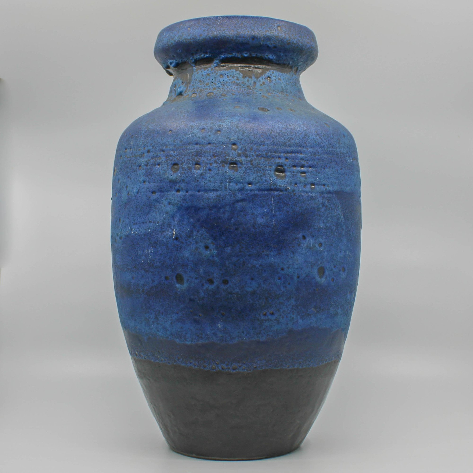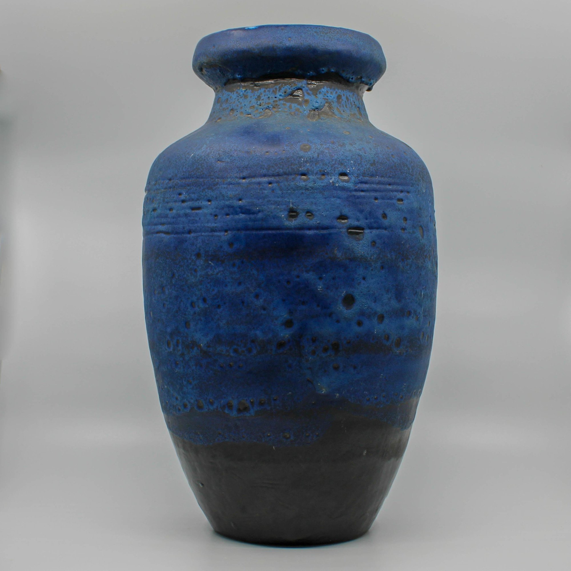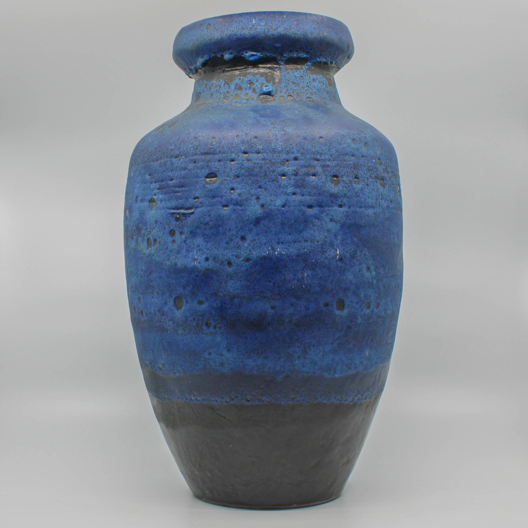 Deze West Germany Fat Lava vaas is omstreeks 1960 in de fabriek Ruscha in Duitsland vervaardigd. Onderaan de vaas bevindt zich het modelnummer ‘841’. De vaas bestaat uit verschillende tinten blauw.