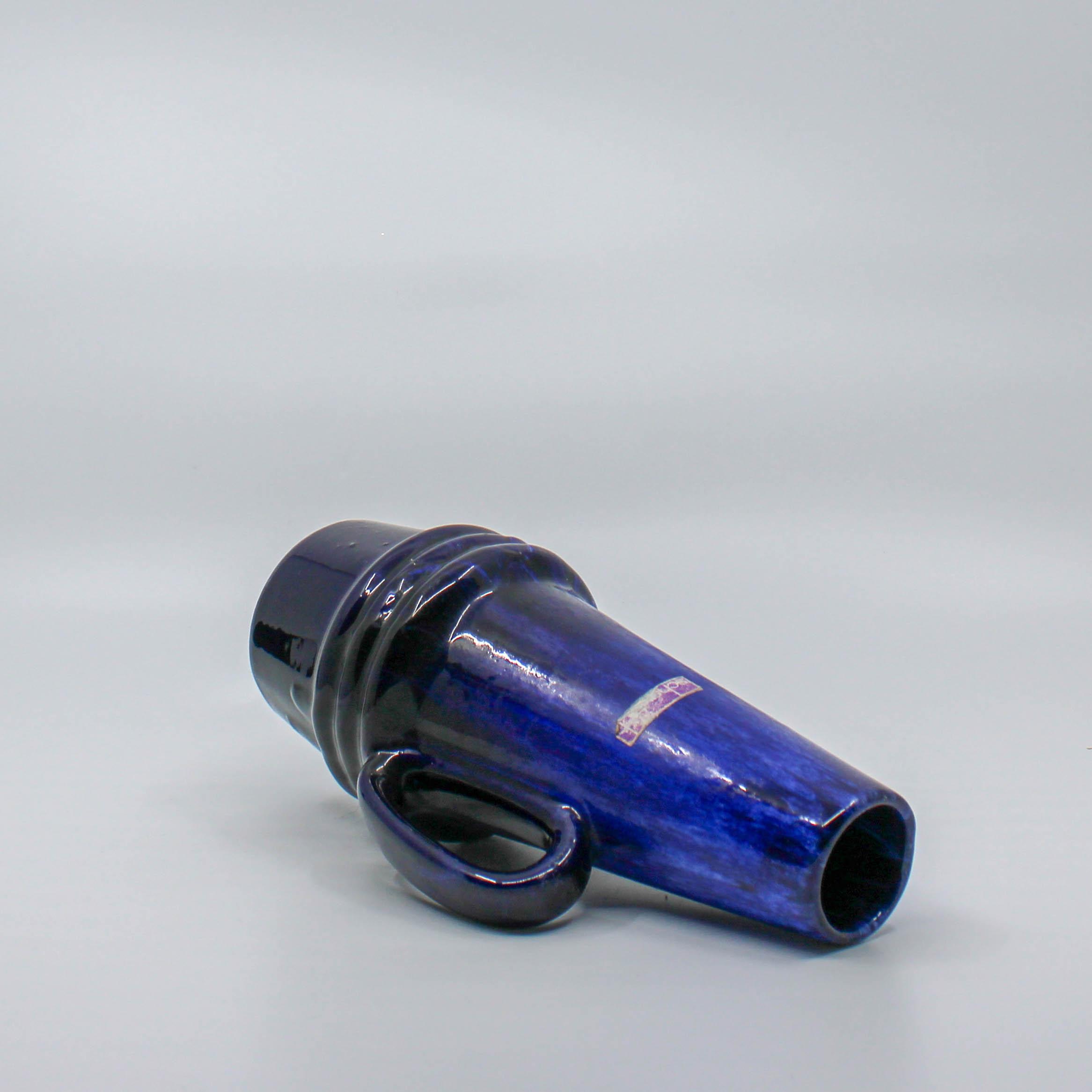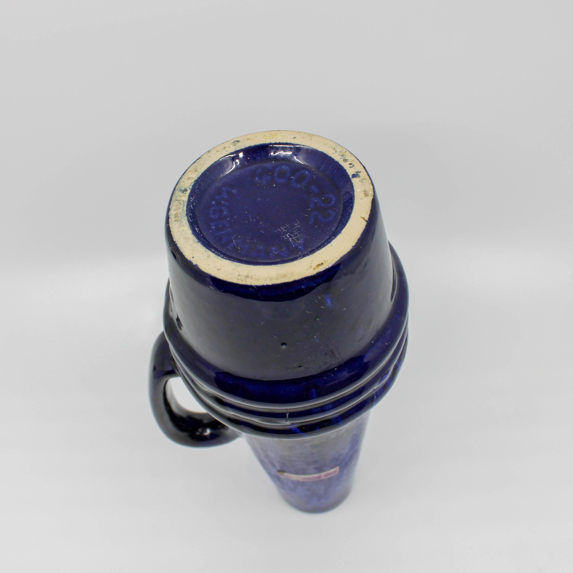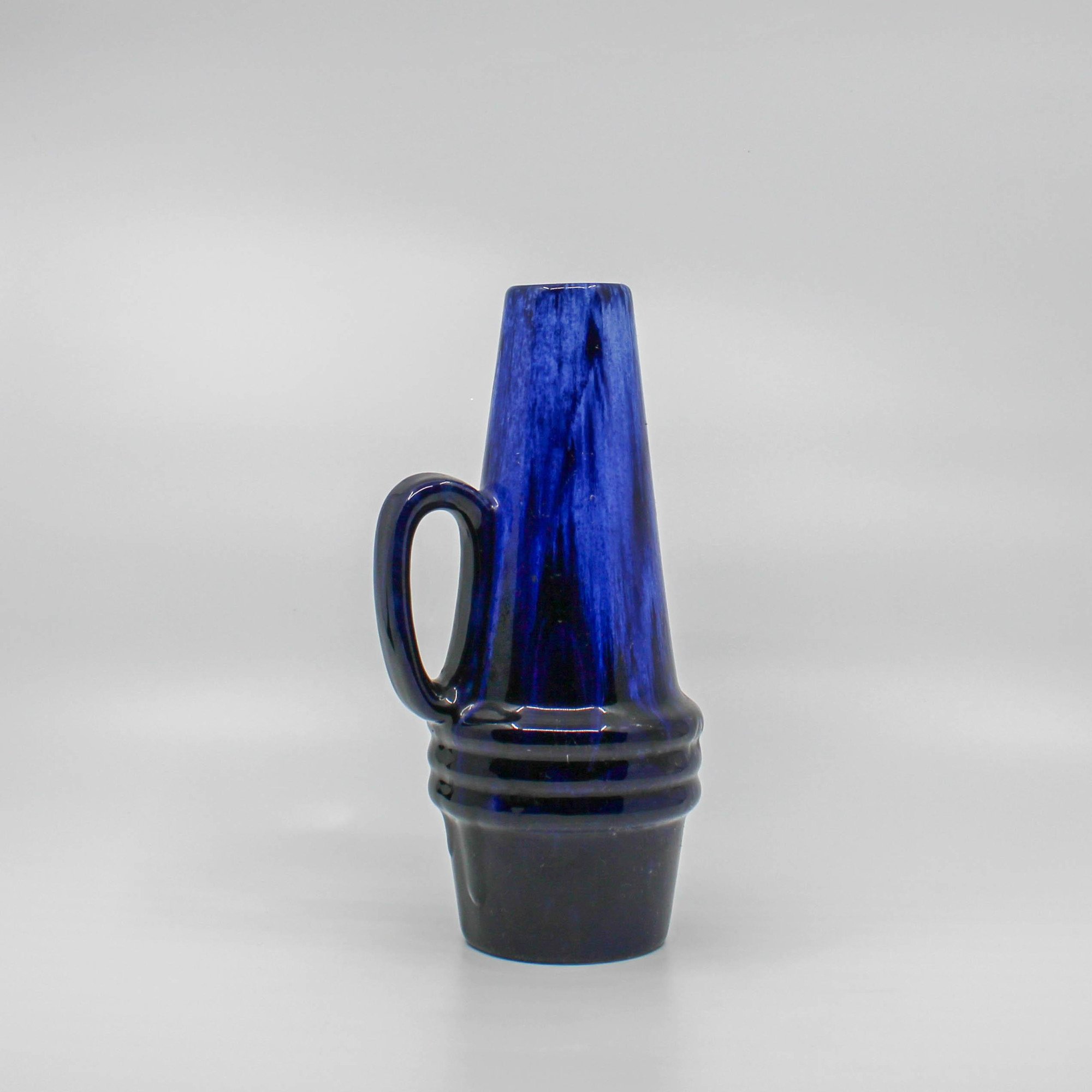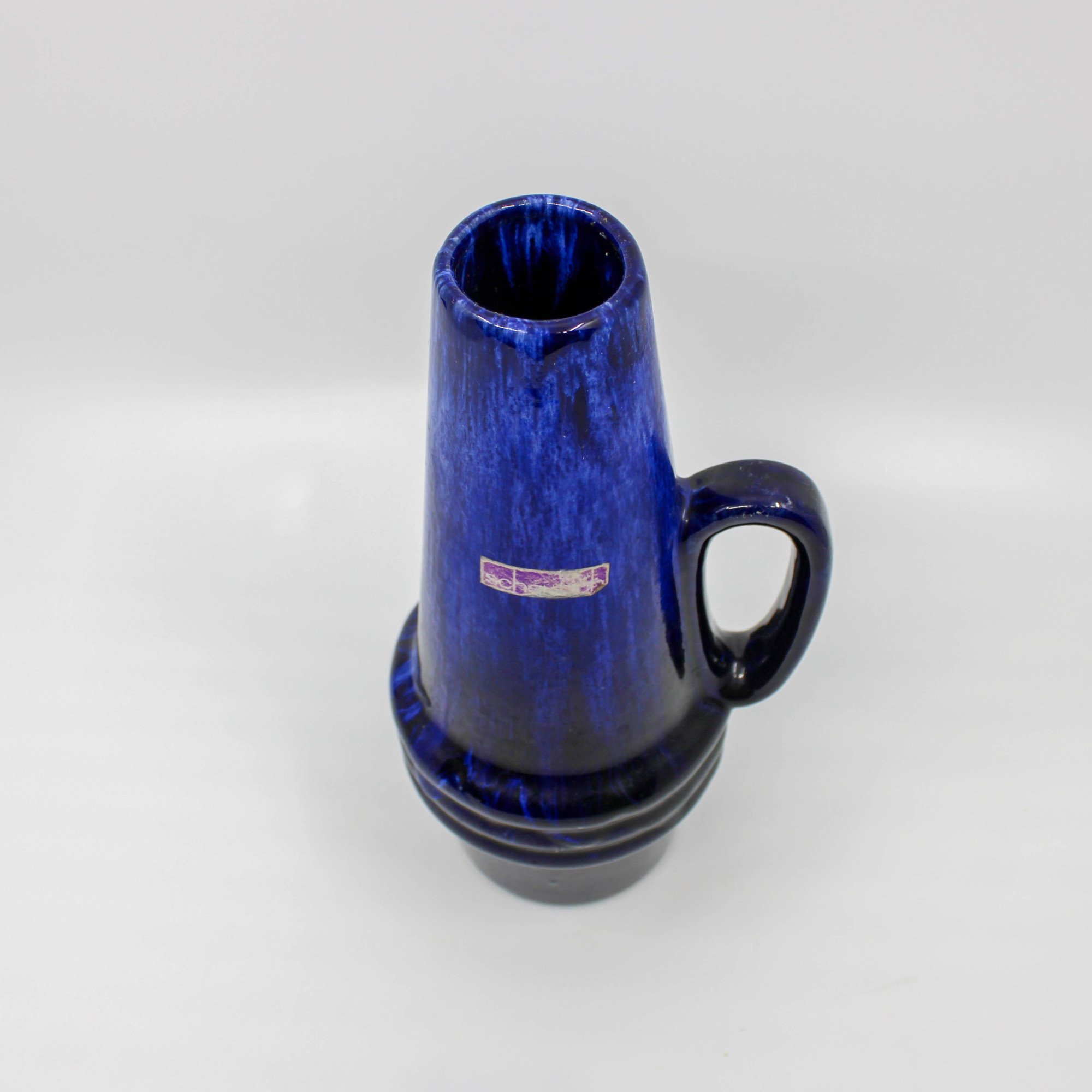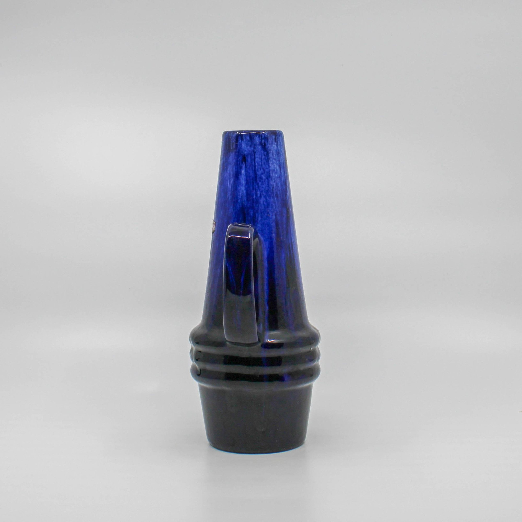 Deze West Germany Scheurich kruik is omstreeks 1960 in de fabriek Scheurich in Duitsland vervaardigd. Onderaan de vaas bevindt zich het modelnummer 400 en de hoogte 22 (cm.) De kruik bestaat uit verschillende tinten blauw met zwart.